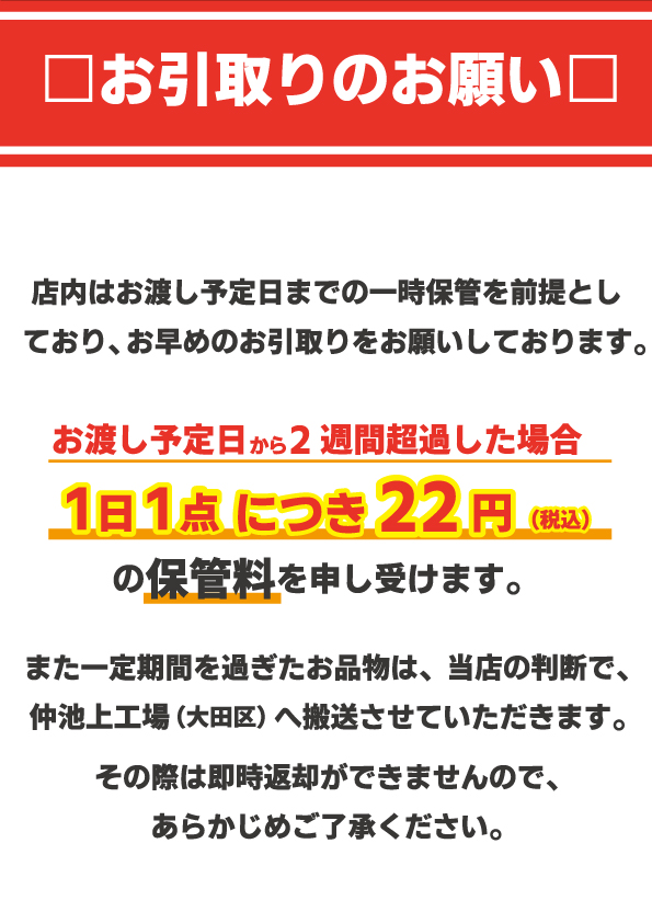 当日仕上げ朝11:00お預り⇒夕方18:00お渡し ※毎週火曜日・水曜日即日仕上げ・仕上り指定停止