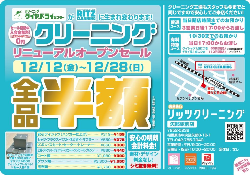 矢部駅前店☆12/12(金)~全品半額!オープンセール中☆ ダイヤ・ドライセンターの工場・受付スタッフが引き続きご対応いたします。
