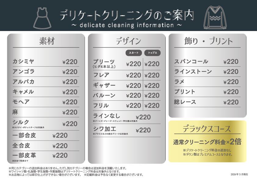 当日仕上げ朝11:00お預り⇒夕方18:00お渡し ※毎週火曜日・水曜日即日仕上げ・仕上り指定停止