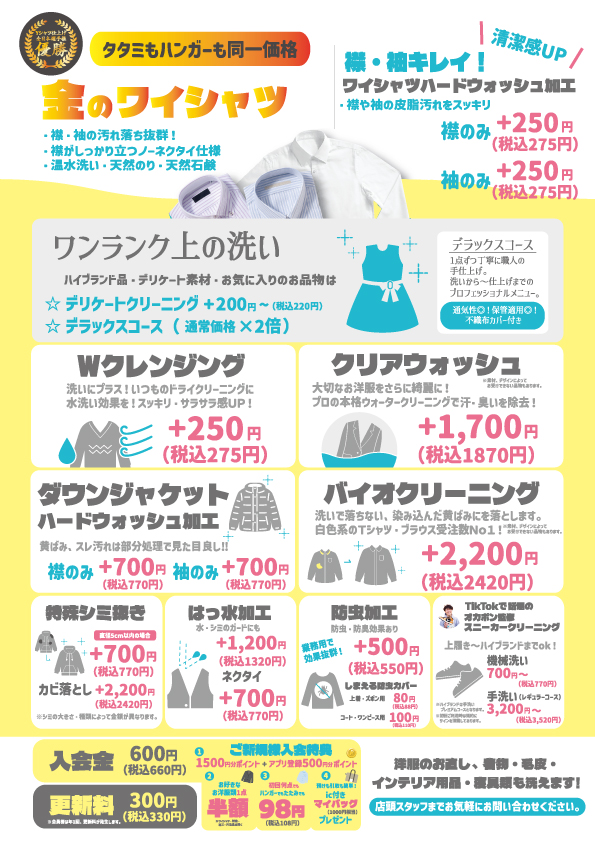 ※記載は主要品目の価格となります。その他お品物の価格については店頭スタッフまでお尋ねください。
